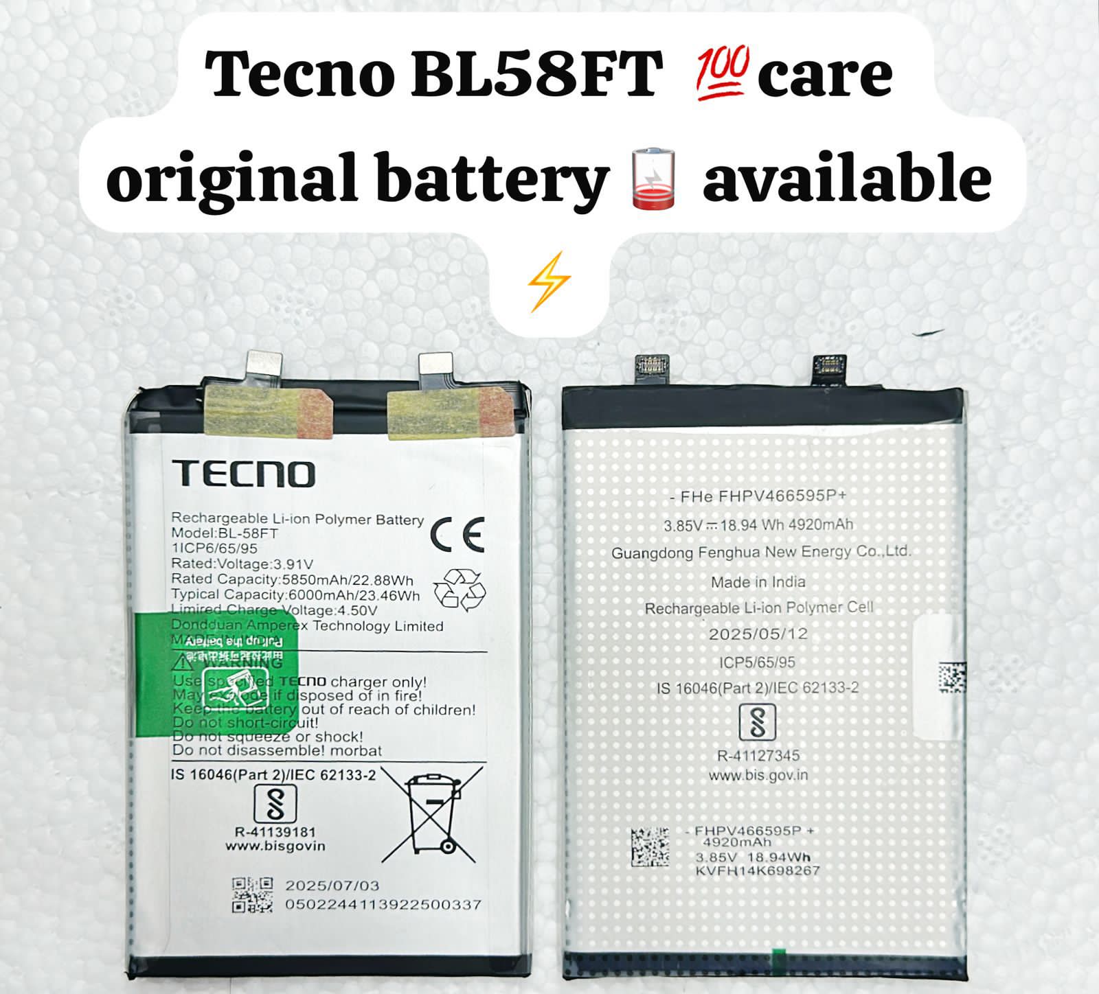 Original Tecno BL-58FT Battery For Tecno Pova 6 – 6000mAh.
